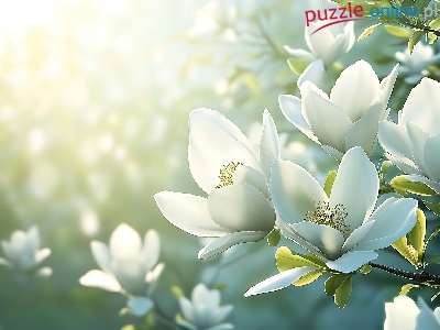 Światło, Białe, Słoneczne, Magnolia, Gałązki, Kwiaty, Grafika