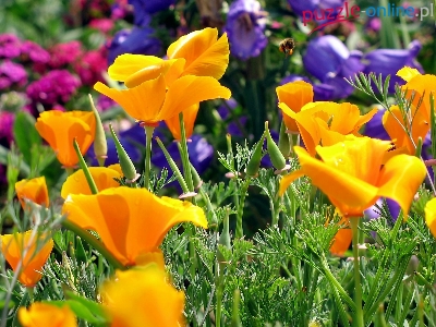 Puzzle Maczki kalifornijskie, Lato, Łąka, Pozłotka kalifornijska