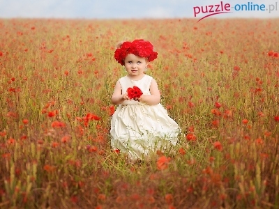 Maki, Łąka, Kwiaty, Dziewczynka