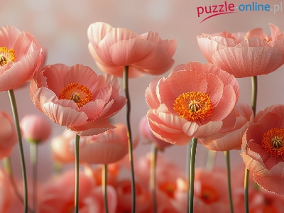 Puzzle Kwiaty, Rozkwitnięte, Pomarańczowe, Maki