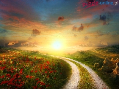 Maki, Droga, Zachód Słońca, Promienie, Pola
