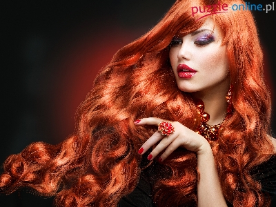 Puzzle Makijaż, Rudowłosa, Kobieta, Biżuteria