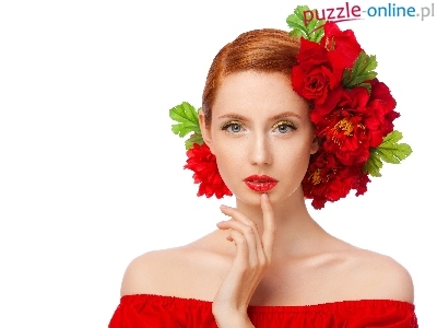 Puzzle Makijaż, Kobieta, Kwiaty, Dłoń