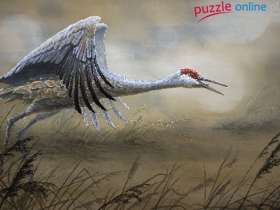 Żuraw kanadyjski, Akwarela, Malarstwo, Obraz, Trawy, Ptak