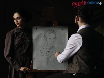 Puzzle Malarz, Portret, Kobieta, Rysunek