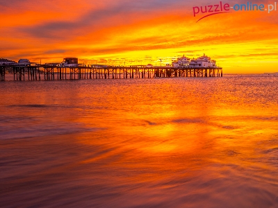 Kalifornia, Morze, Molo, Wschód słońca, Stany Zjednoczone, Malibu
