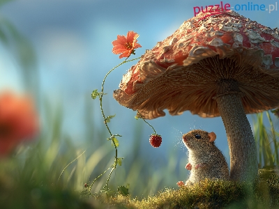 Kwiat, Grzyb, Myszoskoczek, Malina, Grafika AI, Trawa