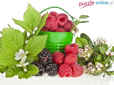 Maliny, Kwiaty, Zielone, Wiaderko, Jeżyny