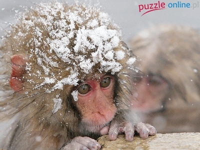 Puzzle Łapka, Zamyślona, Małpka, Śnieg