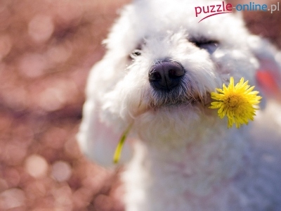 Puzzle Żółty, Pies, Maltańczyk, Kwiat