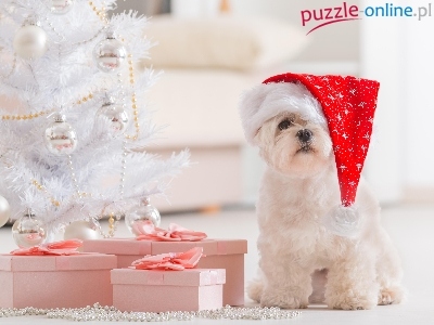 Świąteczne, Prezenty, Pies, Maltańczyk, Choinka