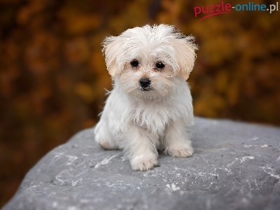 Maltańczyk, Park, Mały, Szczeniaczek, Kamień