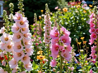 Puzzle Ogród, Malwy, Kwiaty, Grafika AI