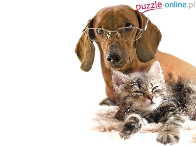 Puzzle Mały, Pies, Okulary, Kotek