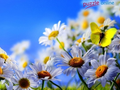Puzzle Żółty, Białe, Margerytki, Motyl