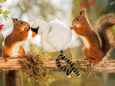 Słodkie, Maskotka, Jarzebina, Pluszowa, Dwie, Wiewiórki, Gałąź