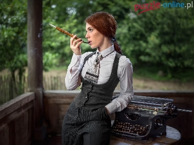Kamizelka, Maszyna do pisania, Kobieta, Krawat, Papieros