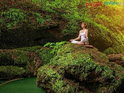 Medytacja, Skały, Kobieta, Joga, Las
