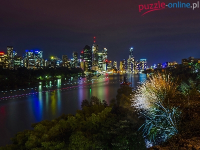 Puzzle Melbourne, Miasto Nocą, Rzeka, Australia