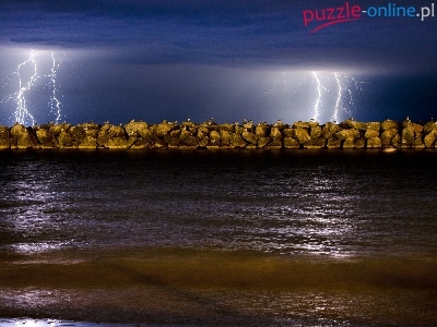 Puzzle Mewy, Noc, Wybrzeże, Błyskawice