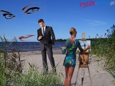 Puzzle Mężczyzna, Woda, Kobieta, Twarz