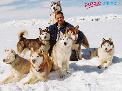 Puzzle Mężczyzna, Zima, Siberian Husky