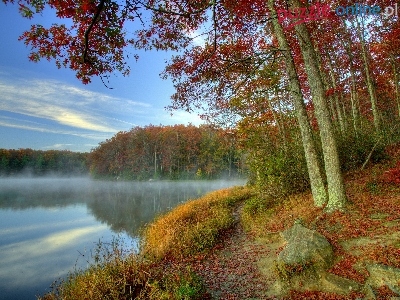 Puzzle Mgiełka, Jesień, Jezioro, Drzewa