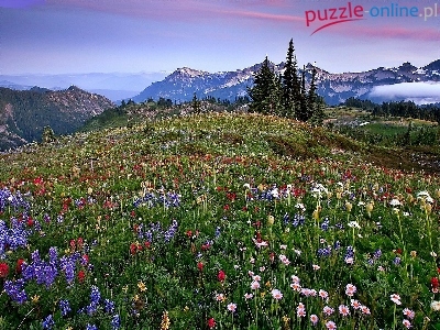 Świerki, Łąka, Góry, Mgła, Kwietna