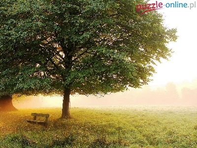 Puzzle Mgła, Łąka, Ławka, Drzewa