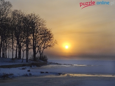Puzzle Mgła, Jezioro, Drzewa, Śnieg