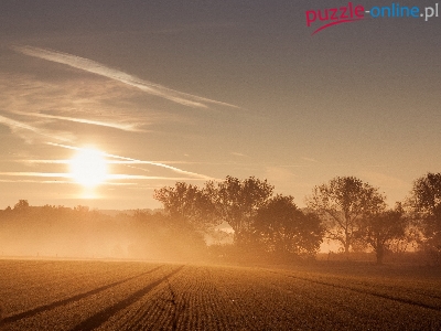 Mgła, Słońca, Pole, Drzewa, Wschód