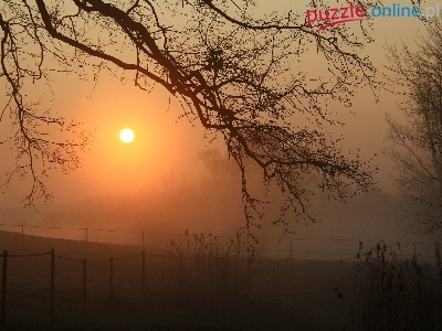 Mgła, Światło, Pole, Drzewa, Przebijające