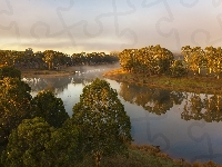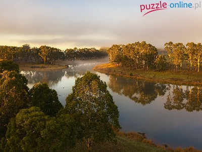 Puzzle Drzewa, Rzeka, Zielone, Mgła