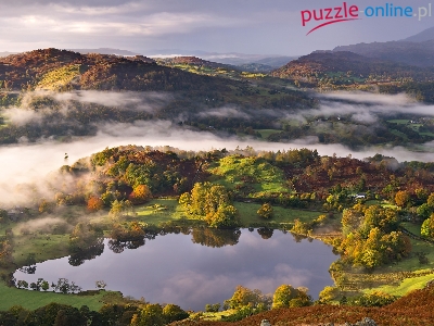 Narodowy, Anglia, Jezioro, Lake District, Lasy, Park, Góry, Mgła