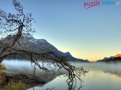 Puzzle Mgła, Góry, Jezioro, Drzewo