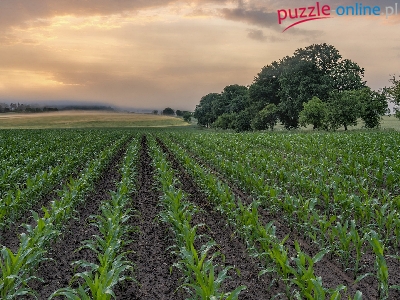Puzzle Kukurydzy, Drzewa, Pole, Mgła