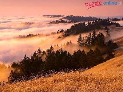 Puzzle Łąki, Las, Mgła, Wzgórza