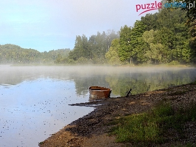 Puzzle Mgła, Jezioro, Las, Łódka