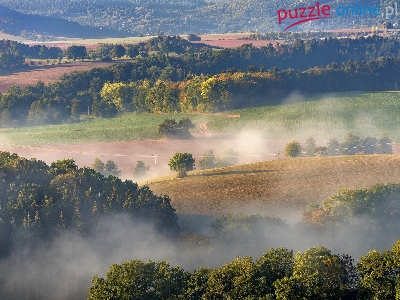Puzzle Pola, Drzewa, Wzgórza, Mgła