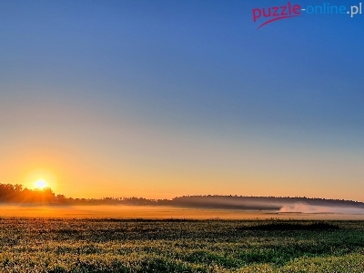 Puzzle Mgła, Wschód, Słońca, Łąka