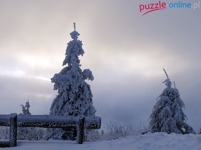 Puzzle Mgła, Zima, Świerki, Ławka