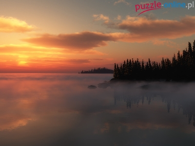 Mgle, Jezioro, Słońca, Las, We, Zachód