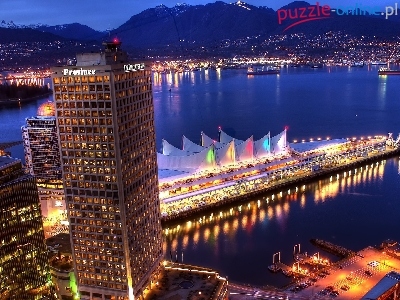 Puzzle Miasta, Panorama, Oświetlonego, Vancouver