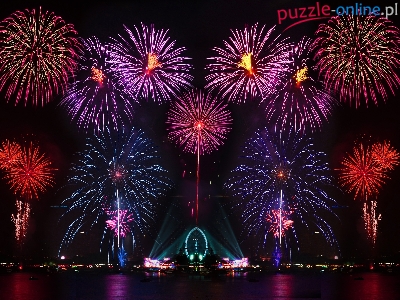 Miasta, Fajerwerki, Nowy Rok, Panorama, NocÄ…