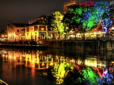 Miasta, Malakka, Odbicie, Malezja, Panorama, Nocą