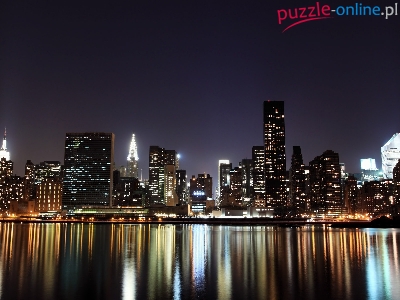Miasta, Odbicie, Rzeka, Panorama, Nocą