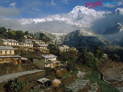 Miasteczko, Góry, Nepal, Ghrung, Domy