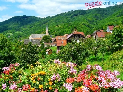 Puzzle Góry, Miasteczko, Kwiaty