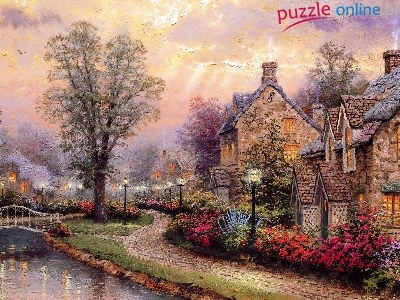 Puzzle Miasteczko, Thomas, Kinkade, Obraz