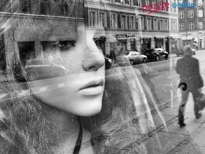 Puzzle Miasto, Kobieta, Twarz, Czarno-Białe